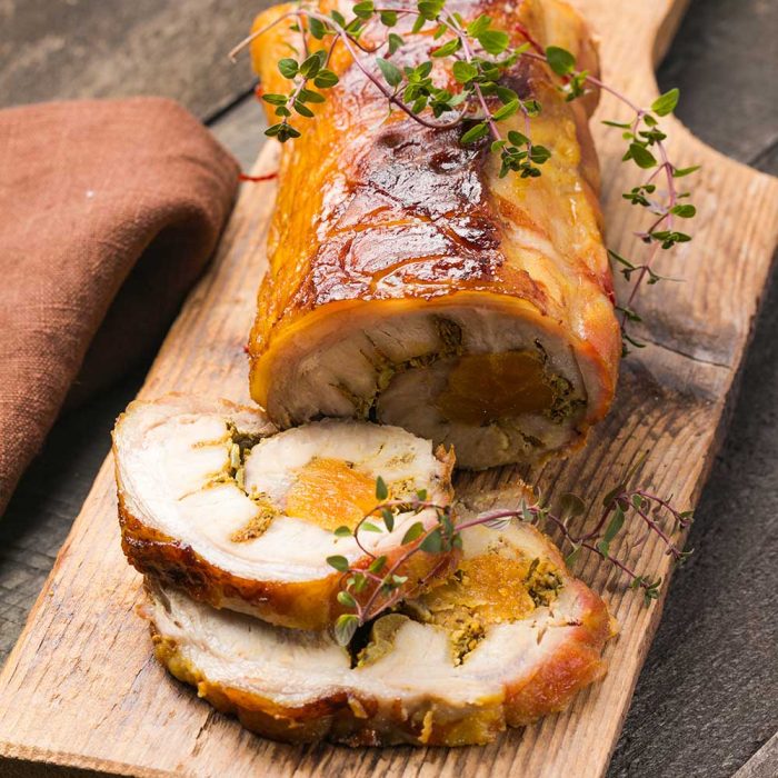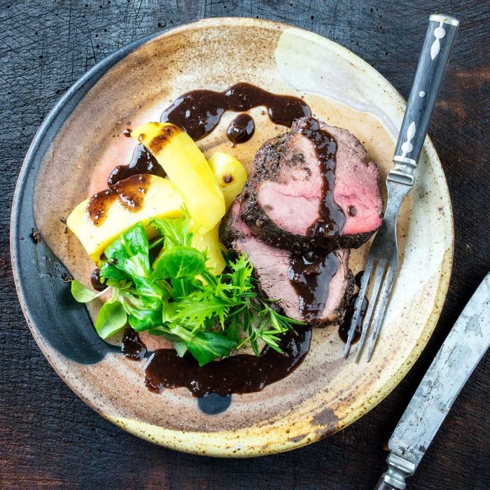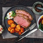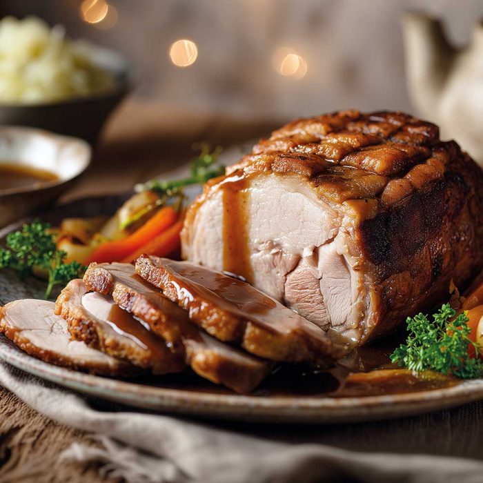 Marinierter Lammbraten mit Tomaten, Kartoffeln und Oliven