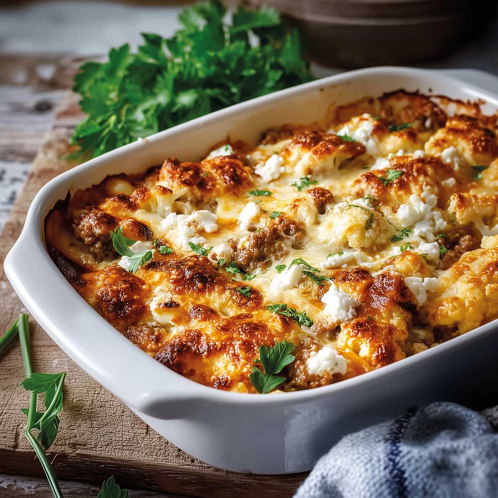 Leckerer Auflauf aus Rinderhack und Blumenkohl