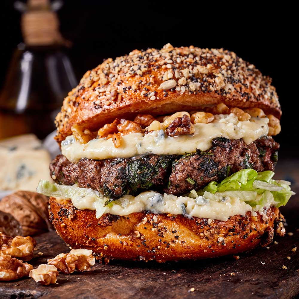 Schimmelkäse und weitere leckere Zutaten für diesen Burger