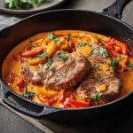 Jetzt die Karbonade zugedeckt 60 Min. bei niedriger Hitze schmoren und währenddessen mehrfach umrühren.
