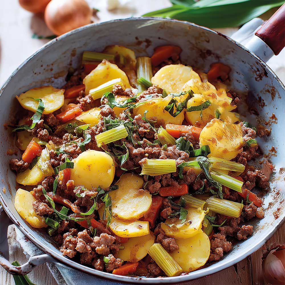 Passend für den Frühling - diese Pfanne aus Hack und Kartoffeln