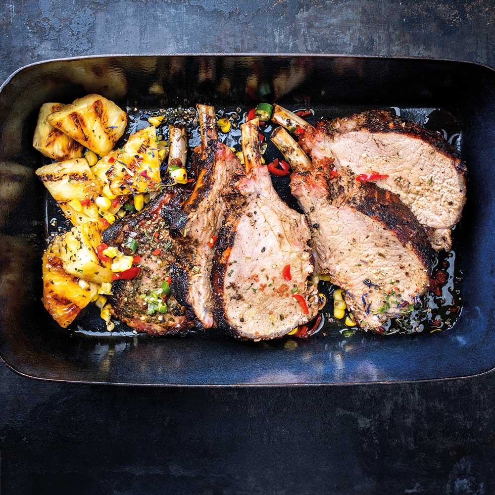 Kalbskoteletts mit feiner Marinade und fruchtiger Ananas
