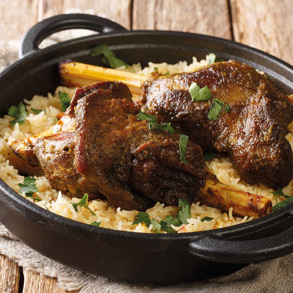 Lammhaxen mit Gemüse und Basmatireis