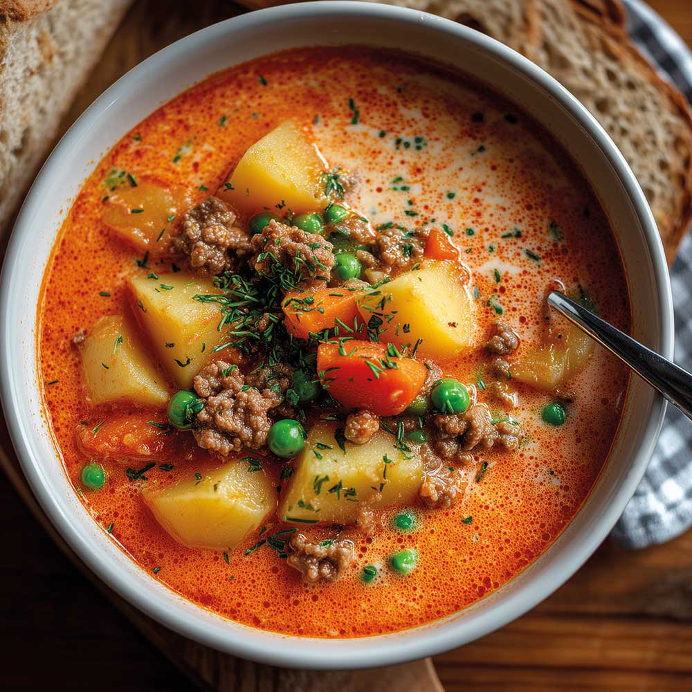 Eintopf mit Hackfleisch, Zwiebeln und Gemüse
