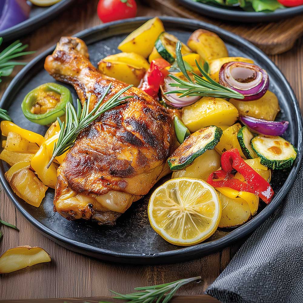Hähnchenkeulen mit Kartoffeln und Gemüse