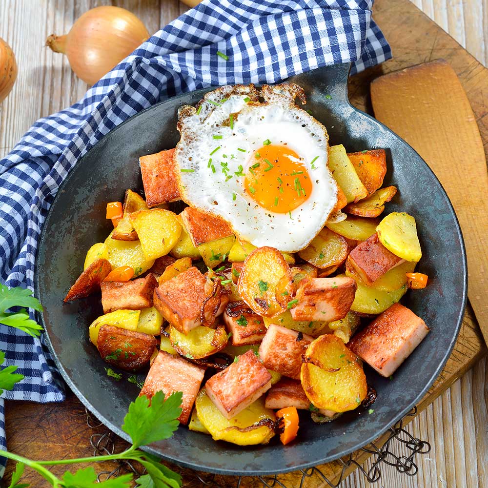 Leberkäse und Kartoffeln ergeben eine leckere Pfanne