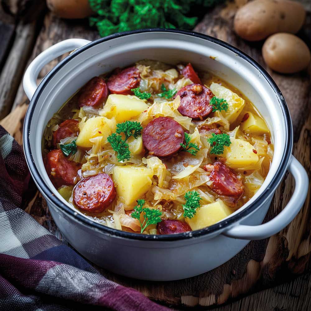 Eintopf aus Mettenden, Kartoffeln und Spitzkohl