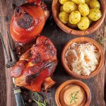Wildschweinkeule parieren und einschneiden, damit sie sich aufrollen lässt. Mit Salz und Pfeffer würzen.