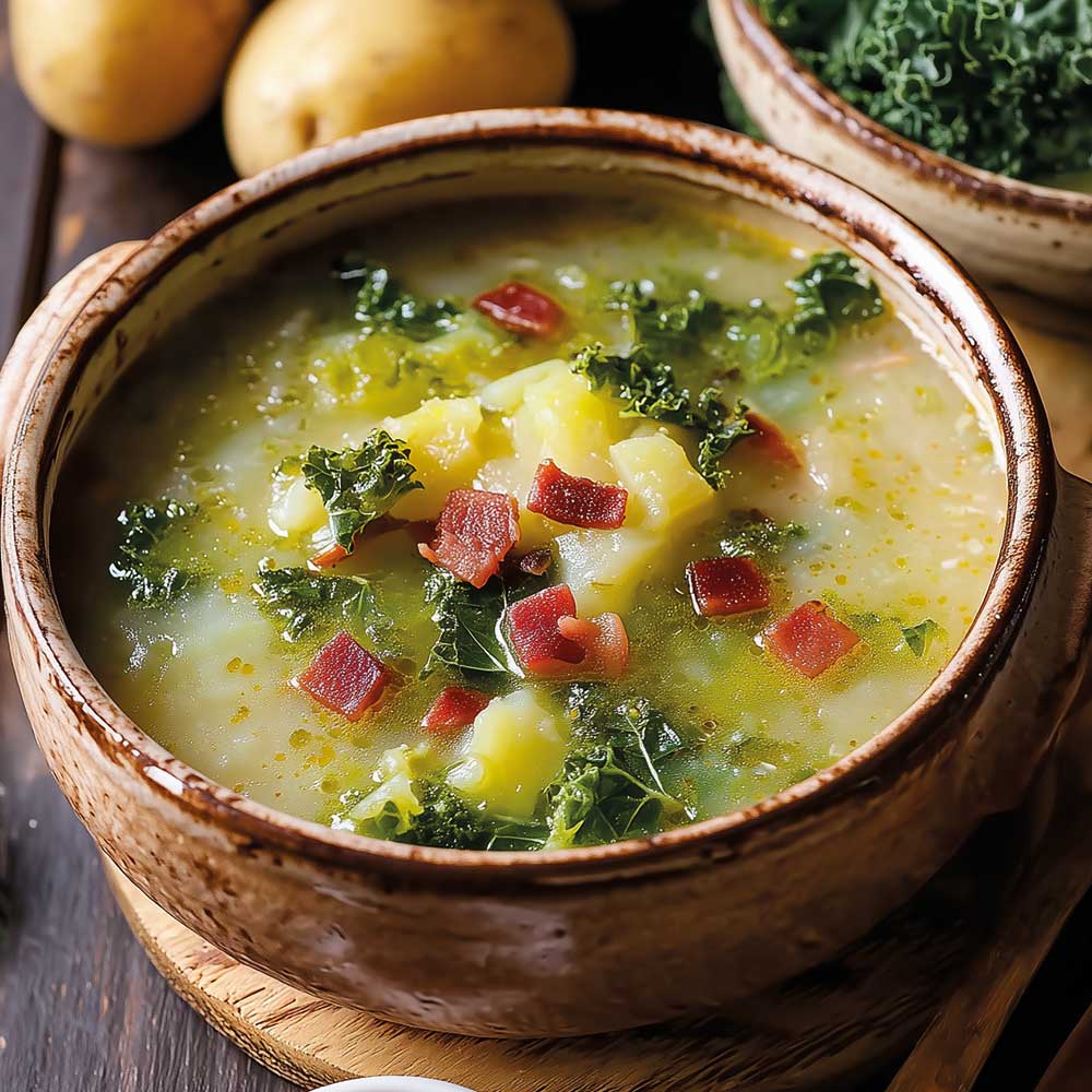 Suppe mit Salz, Pfeffer und Muskat abschmecken. Mit Speckwürfel servieren.
