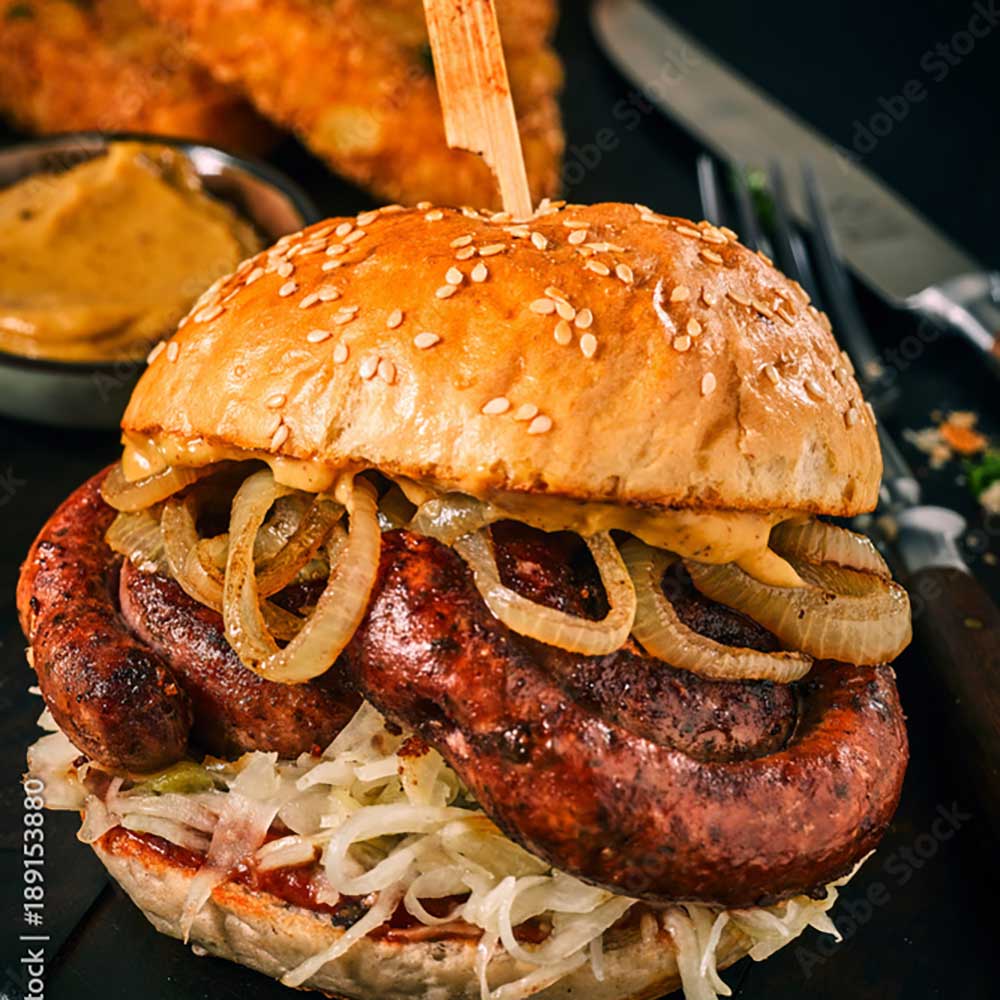 Eine Wurstschnecke im Burger
